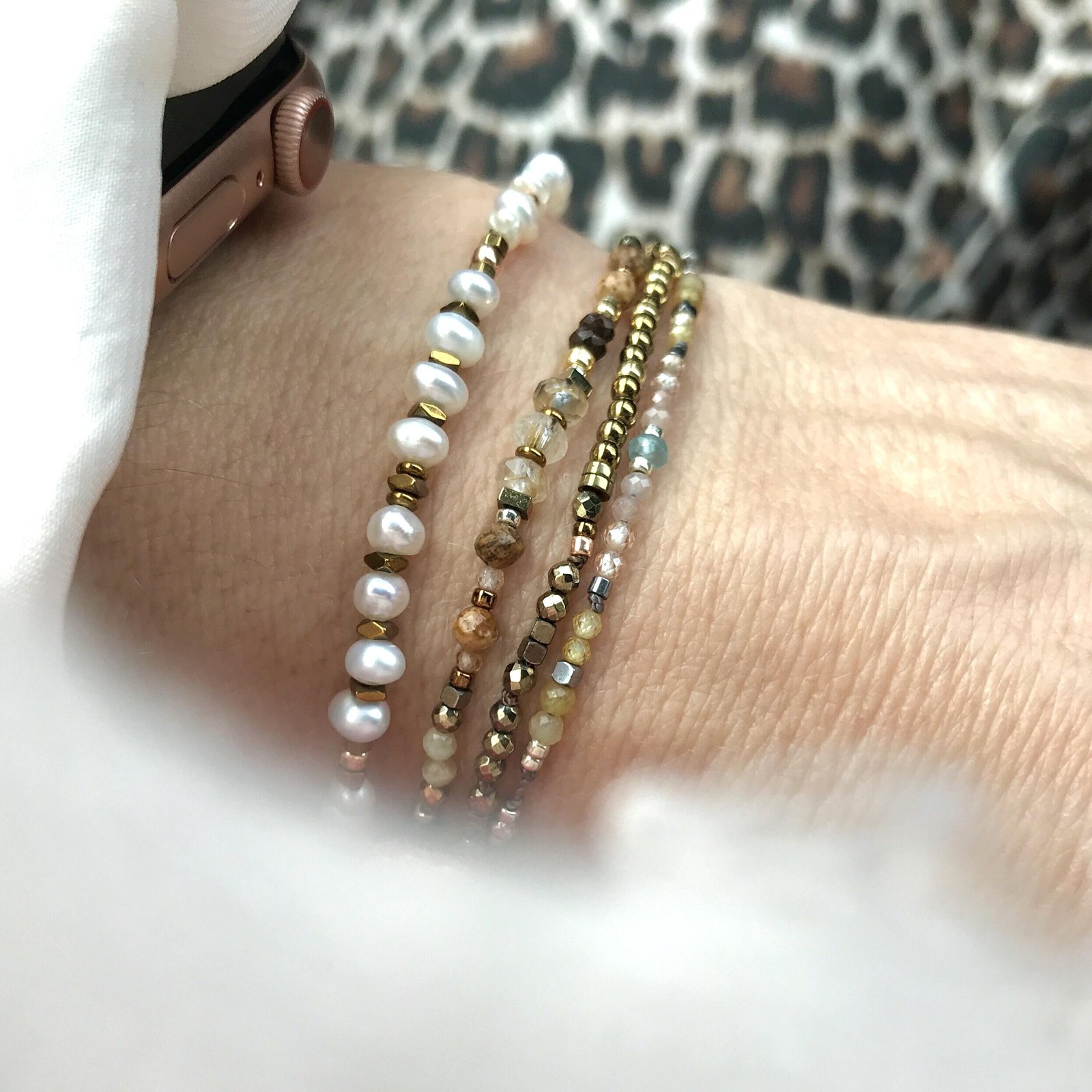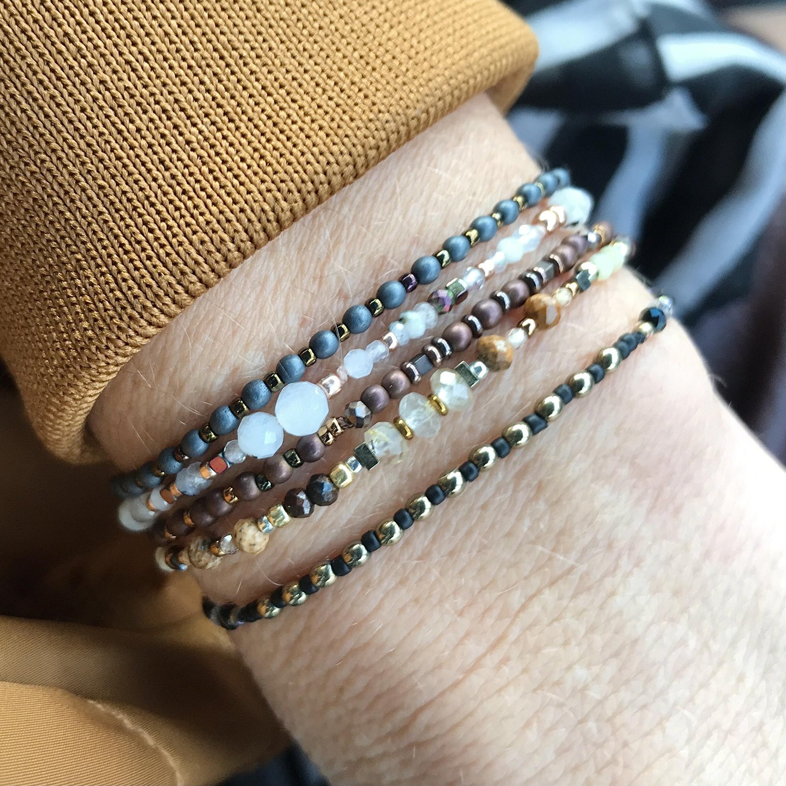 Bransoletki mają standardowy wymiar około 25 cm całkowitej długości co daje obwód około 22 cm, więc pasują na prawie każdy nadgarstek. Jeśli potrzebujesz rozmiar mniejszy lub większy, prześlij mi wiadomość z zapytaniem.